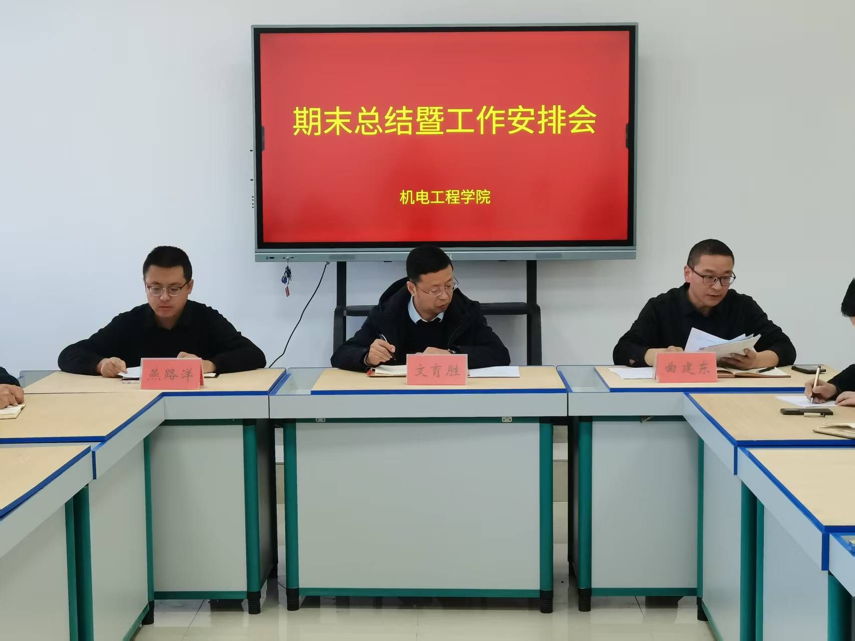 凝心聚力谋发展 砥砺奋进启新程——机电工程学院召开学期末总结暨假期工作安排会 1 月 16 日下午,机电工程学院学期末总结会暨假期工作安排会顺利召开,全体教师参会,学校文育胜书记受邀莅临指导。 会上,曲建东院长首先复盘学期工作,直指当前存在的规矩意识淡薄、工作主动性不足、教师自我学习提升重视不够等问题。针对后续工作,他明确三项核心任务:一是全力做好合格性评估,严格按学校要求落实各项筹备工作;二是假期深耕 ...